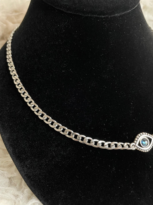 Swarovski Evil Eye Crystal Pendant Necklace with Stainless Steel Curb Chain