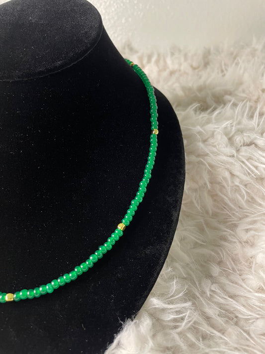 Chic Emerald Green Glass Beaded Necklace with Gold Accents