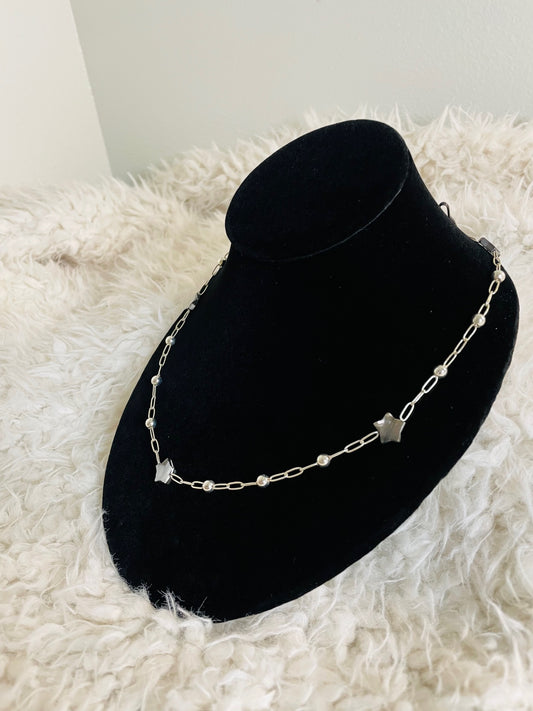 Stylish Star and Butterfly Silver Necklace - Rosary Style