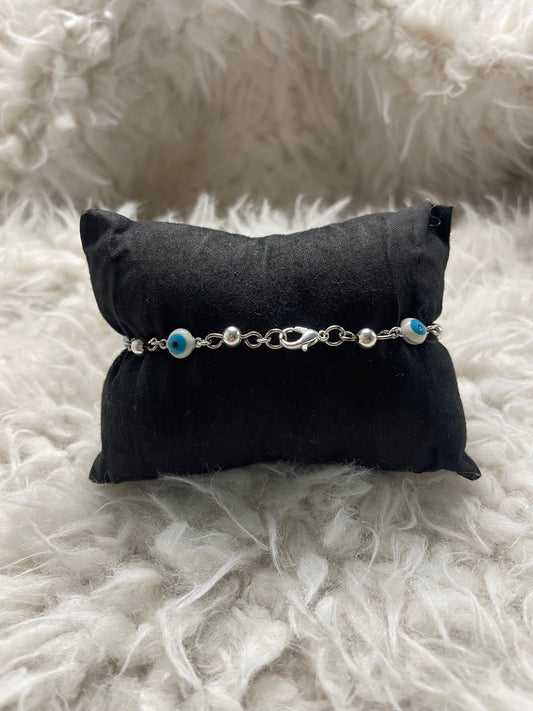 Chic Rhodium Blue Eye Paper Clip Chain Bracelet - Ward Off Negativity