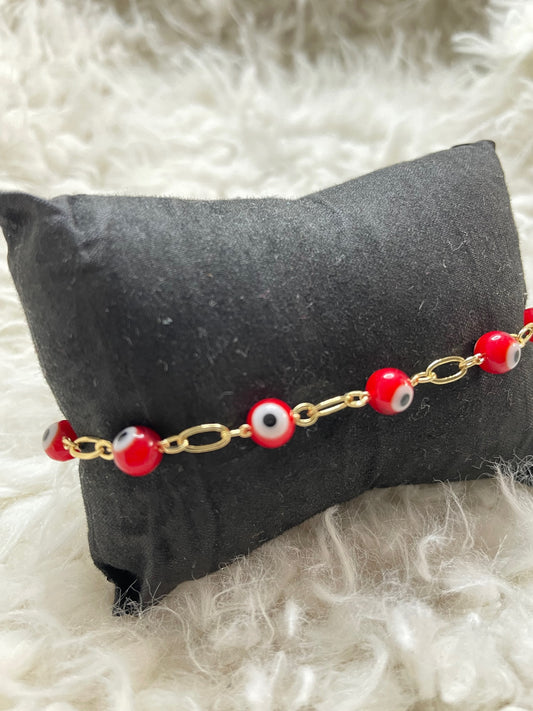 14k Gold-Plated Red Evil Eye Beaded Bracelet - Timeless Protection
